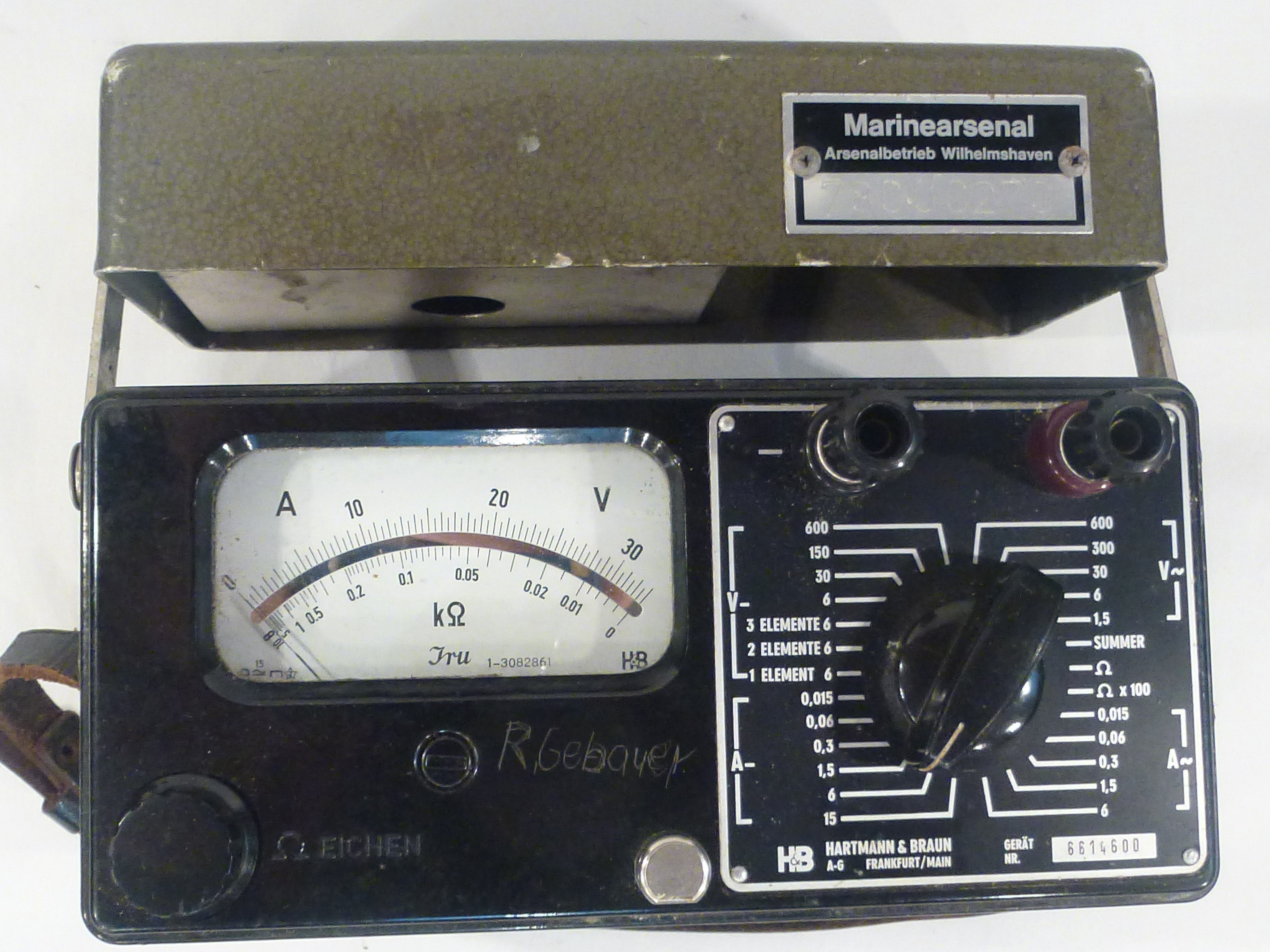 116 Multimeter JRU Veröffentlicht am 04/12/2015 von messtechnik70 Multimeter JRU Bunderwehr Hersteller: Hartmann & Braun Hergestellt: 1952 Zeiwert: 44 Euro Zustand: Gut, technisch noch nicht geprüft, aber Messwerk in Ordnung Teilen mit: Klicken, um einem Freund einen Link per E-Mail zu senden (Wird in neuem Fenster geöffnet) E-Mail Klicken zum Ausdrucken (Wird in neuem Fenster geöffnet) Drucken MehrTweet