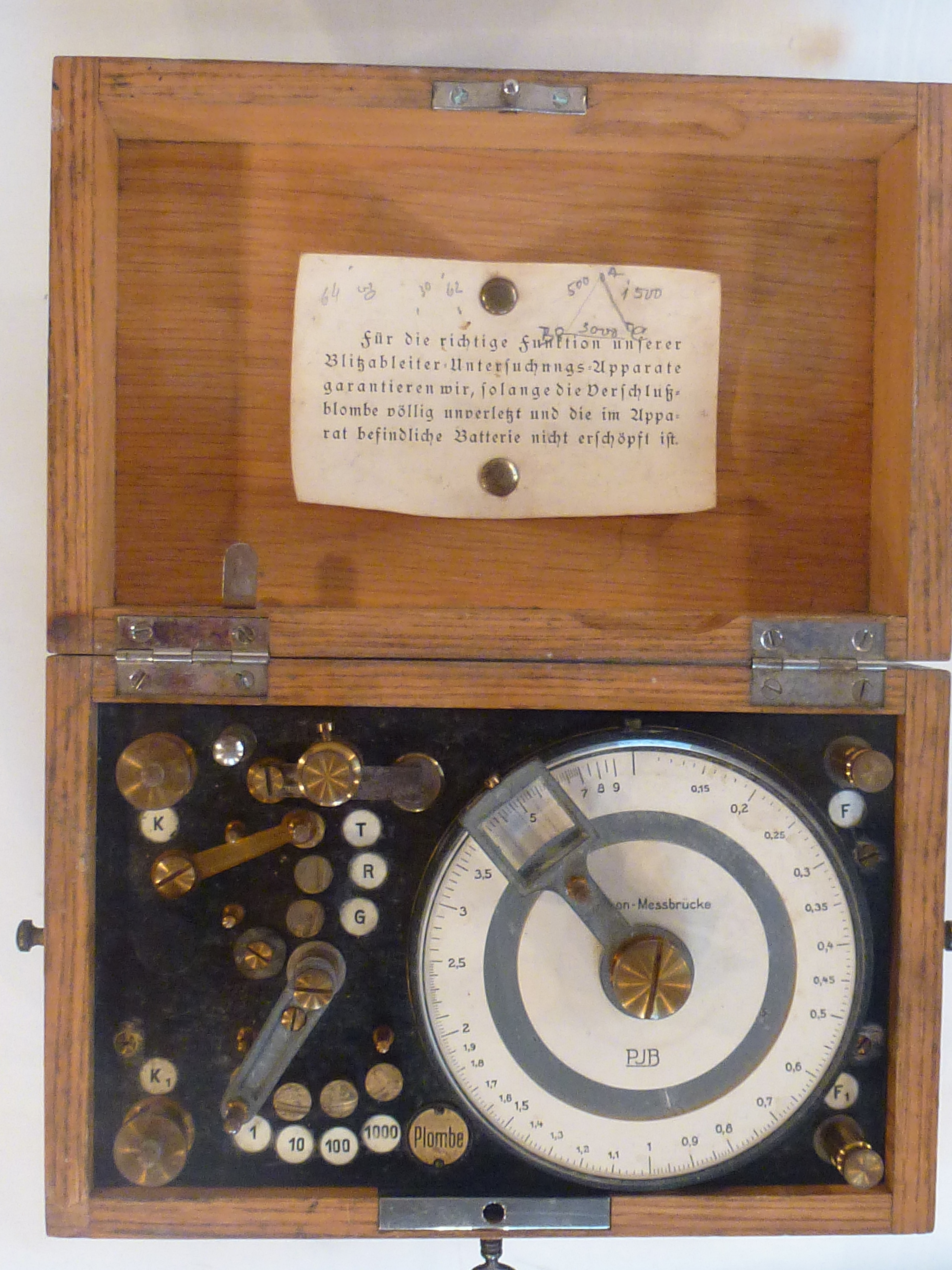 173 Messbrücke für Blitzschutz Veröffentlicht am 04/01/2016 von messtechnik70 Messbrücke für Blitzschutz Hersteller: Paul Jordan Berlin Hergestellt: 1902, Zeitwert: 159 Euro Zustand: Sehr dekorativ, funktioniert sogar noch Teilen mit: Klicken, um einem Freund einen Link per E-Mail zu senden (Wird in neuem Fenster geöffnet) E-Mail Klicken zum Ausdrucken (Wird in neuem Fenster geöffnet) Drucken MehrTweet