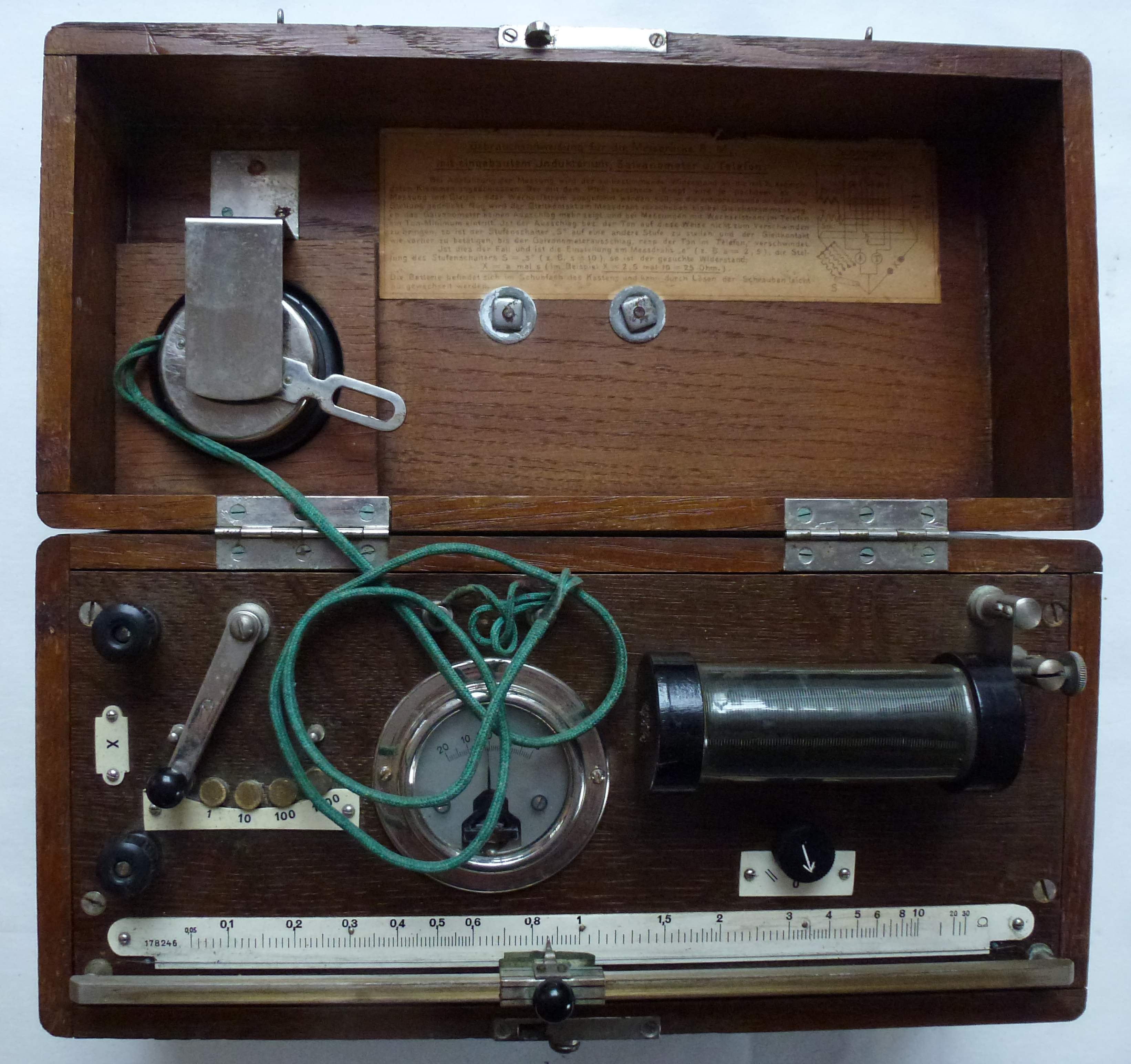 213 Telefonmessbrücke Veröffentlicht am 06/01/2016 von messtechnik70 Telefonmessbrücke Hersteller: Felten & Guilleaume Carlswerk AG Köln Hergestellt: 1908, Zeitwert: 145 Euro Zustand: Gut und sehr dekorativ, technisch ungeprüft. Teilen mit: Klicken, um einem Freund einen Link per E-Mail zu senden (Wird in neuem Fenster geöffnet) E-Mail Klicken zum Ausdrucken (Wird in neuem Fenster geöffnet) Drucken MehrTweet