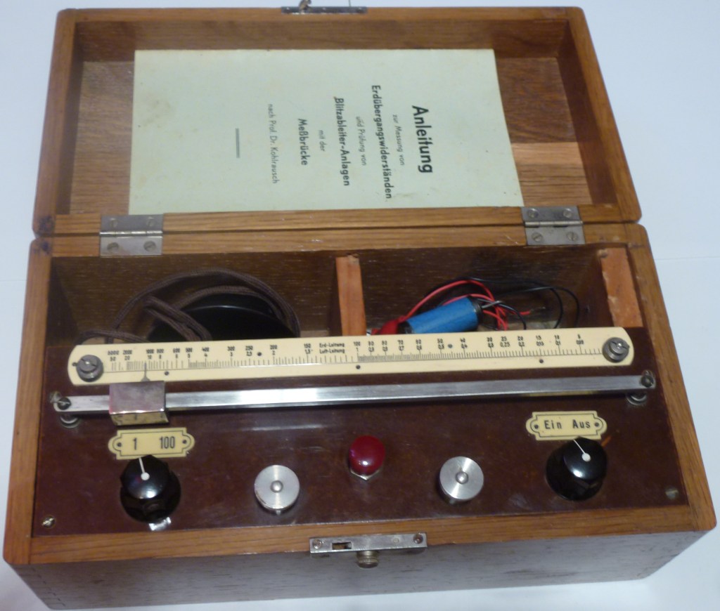 Zustand: Gut bis Sehr gut u. noch funktionsbereit. Die Schwachstelle dieser Geräte ist der Summer. Mit diesen Geräten wurden Blitzschutzerder und Telefonerder nach dem Wechselspannungsbrückenprinzip nach Kohlrausch ausgemessen. Der Widerstandsschalter auf dem geringen Wert wurde für die Direktleitung  zum Erder u. der Widerstandsschalter auf dem hohen Wert für die Leitung über Erde benutzt. Selbst 1964 gab es noch OB Telefonleitungen die als Rückleitung die Erde benutzten.
