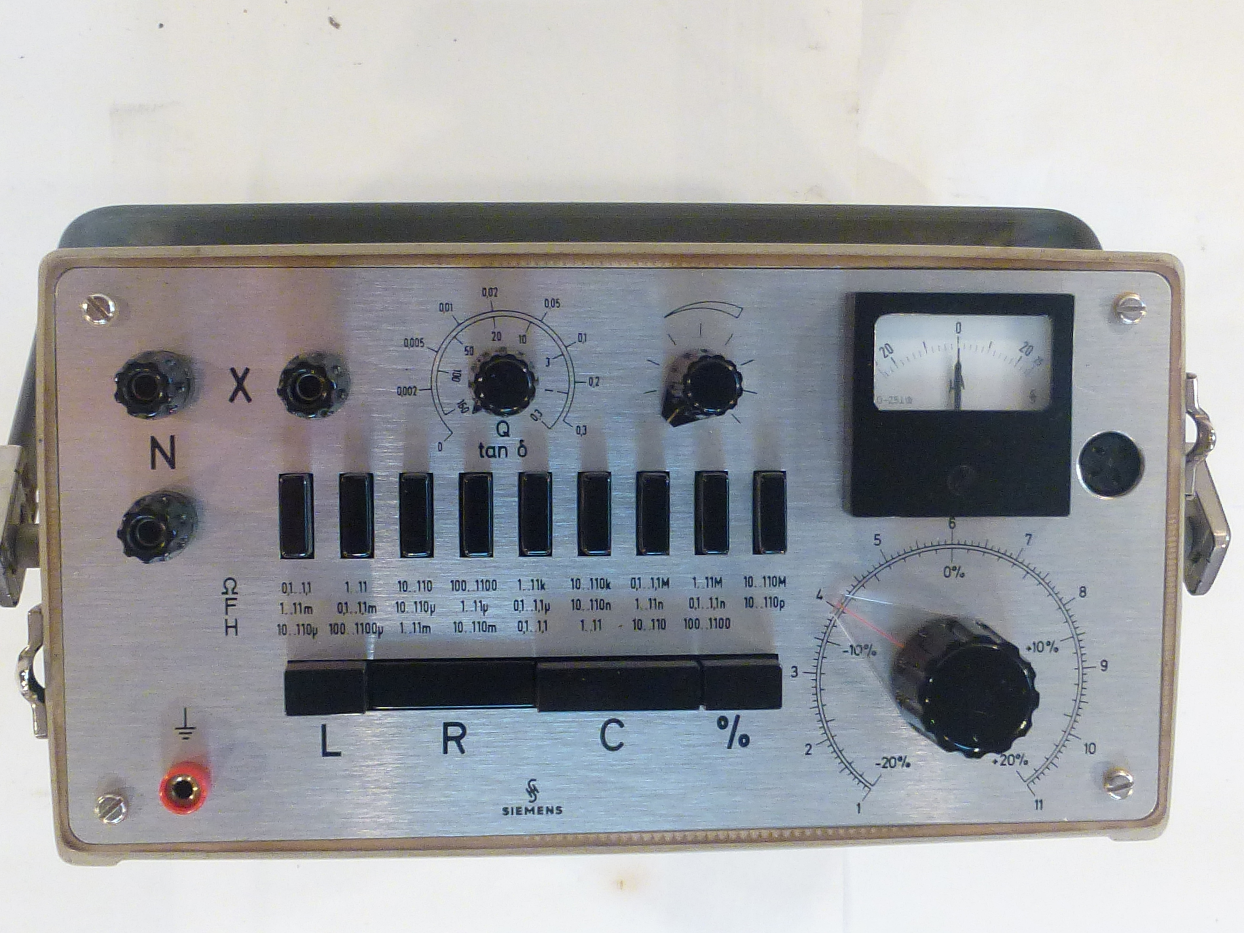 Beschreibung: Das Gerät befindet sich in einem guten Zustand. Die Funktion wurde wieder hergestellt. Es ist für das Messen von Widerständen in Gleichspannungsbereich von 1 Ohm bis 100 KOhm und im Wechselspannungsbereich (50Hz) von 0,1 Ohm bis 10 MOhm ausgelegt. Induktivitätsmessungen mit 50 Hz gehen von 100 mH bis 1000H und bei 5Khz von 10 µH bis 100 mH. Kapazitäten können bei 50Hz von 1pF bis 1000 µF gemessen werden. Weiterhin sind Isolationsmessungen von 10 MOhm bis 10000MOhm sowie Scheinwiderstands und Vergleichsmessungen möglich. 800Hz und 5KHz sind separat abnehmbar. In erster Linie war es ein Studioservicegerät der alten Zeit. Prinzipiell ist es auf der Basis von Brückenschaltungen aufgebaut und mit kommerziellen Röhren 1 X ECL 82 u. 2 X EF86 bestückt.